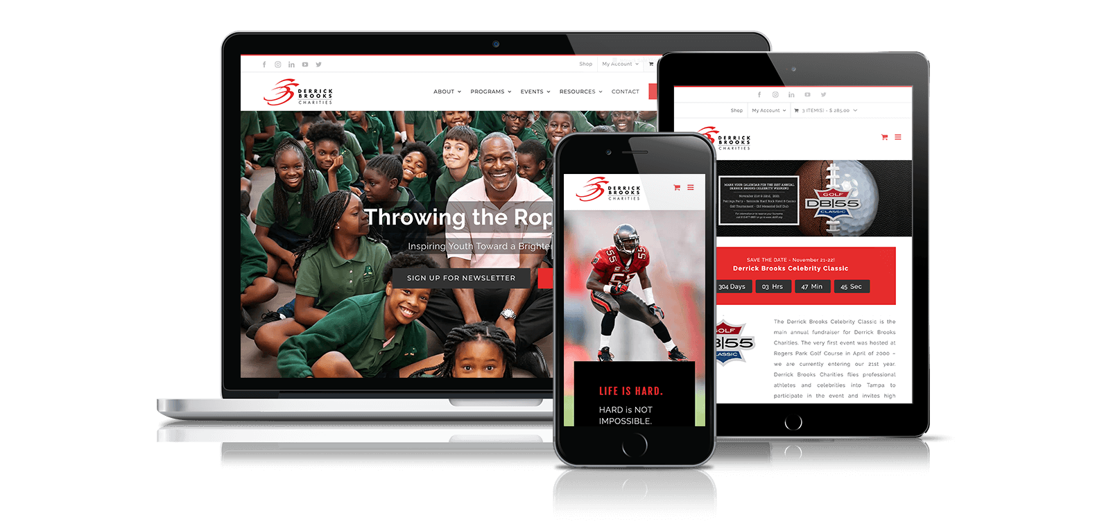 With the day-to-day operations focusing on youth development, the team at Derrick Brooks Charity needed to find new ways to connect with kids, the community and sponsors. With a non-responsive website and little focus on social media engagement, the organization was missing out on key opportunities to engage its stakeholders in the overall impact DB55 was having on the community.